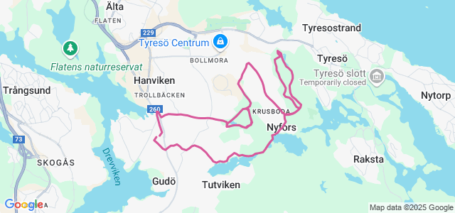 Skogsängsvägen-Knappa två varv runt barnsjön-Mot tyresö centrum-Ett varv runt 4 kilometersspåret vid Alby-Tyresö-Flaten-Långsjön