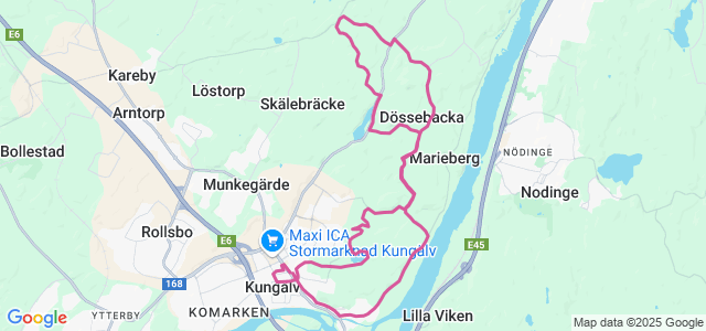Sen drog jag till med en halvmara. Blandat underlag, delvis Bohusleden och lite annat. En del upp o ner så som det blir. Sen tillbaka fick jag lägga till ett varv runt Friskis-kvarteret för att få ihop halvmaran.