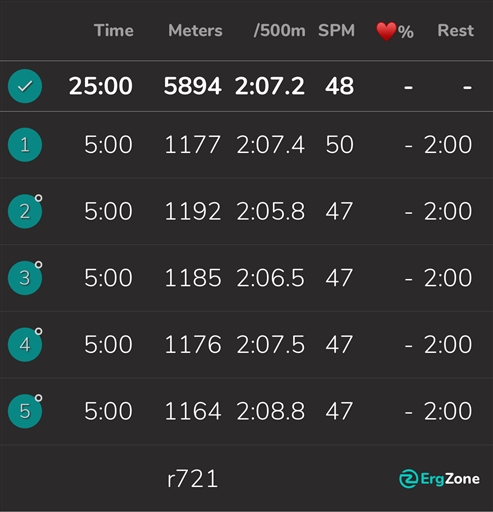 5x5 min, 2 min vila mellan. Nedvarvning.