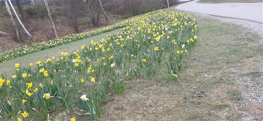 Blir glad av de överdådiga planteringarna med påskliljor vid Flaggplan!