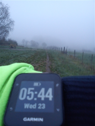 Ut I ett grått o tjockt dis, 6 grader o vindstilla. Genom byn o ner mot sjön, så lugnt o stilla. Såg inte blrjan av sjön ens av dimman. Upp o genom kohagen, ett rådjur skuttade över traktorvägen o kikade överraskat på mig 👀 ut på andra sidan. Grusvägen blöt o geggigt, riktigt halkigt på vissa ställen. Sniglar o grodor på vägen hemåt. 🐸🐌