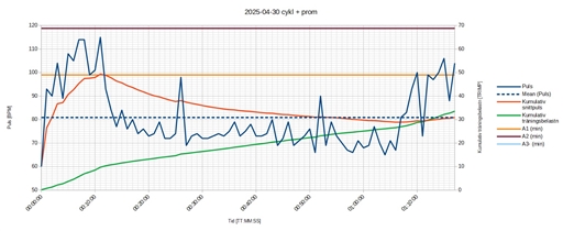 Snittpuls från cykl + prom: 81 BPM