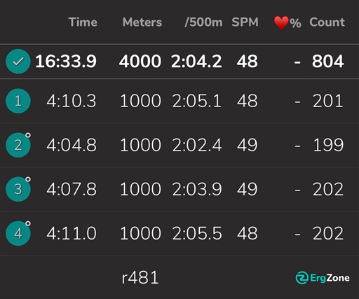 4x1000 m, 2 min vila mellan. Nedvarvning.