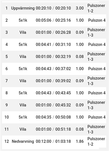 Sprang bara på puls och ansträngning, hade ingen koll på tempo.