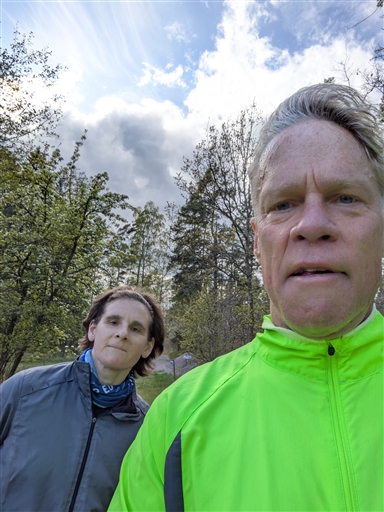 Om två veckor ska jag farthålla på Scaniamilen så jag ville bekanta mig med banan. Karin ställde upp som guide och vi försökte hålla 6 min/km. Det gick bara lite för fort. Ganska många backar.