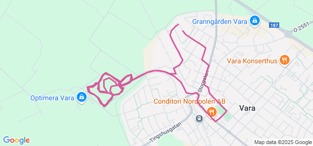 Ett tidigt kortpass idag utan sällskap då det vankades resa mot Göteborg och grillmässa med samling redan 0800 hos jobbarkompis. Men fick i alla fall ihop en mil och fortfarande väldigt trevlig springväder: mulet, knappt någon vind och nästan tvåsiffrigt trots den tidiga timmen. Såklart några varv på Skogskullespåret och en tur genom byn det sista.