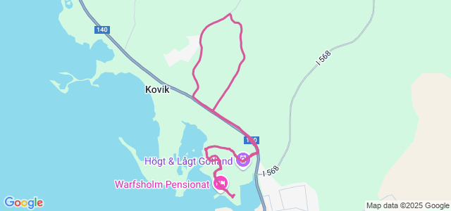 Långsam löpning i Klintehamn, springer efter stranden och hittar sen en väg ut i skogen på andra sidan