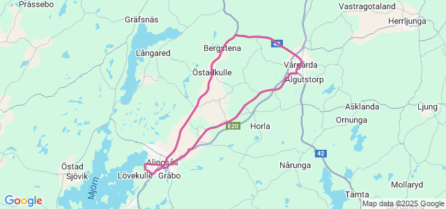 Bra runda till Vårgårda. Efter ett tag kom regnet. Det blev att cykla i regn 2,5 mil mot Alingsås. Men helt ok.