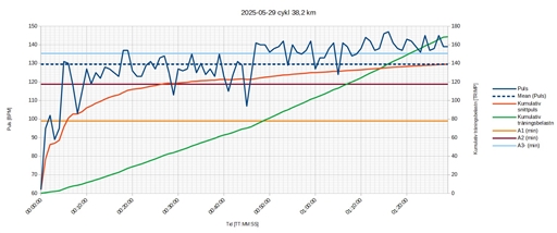 Jag blev positivt överraskad då jag nådde badplatsen ca. 5 min. snabbare än vad jag brukar cykla. På tillbakavägen, vid Gäddeholm, noterade jag att jag låg på ganska hög puls, strax över 140 BPM. Jag hade blivit extra peppad av den snabba tiden till badet och tog omedvetet i lite extra på tillbakavägen. Jag fortsatte trycka på rätt duktigt även resten av vägen hem, utan att stirra mig blind på pulsen. Jag körde mer på känsla.