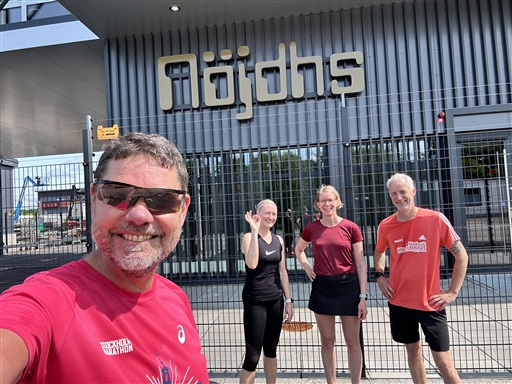 Idag var alla klart nöjda med passet. En dryg halvmara med fartökningar på 3+3+1 km. Jag fick med mig Tony Maria och Anna Dessutom var Annika med första 10 km. Underbart löparväder och fartökningarna kändes lättare än förra veckan. Dagen till ära hade jag en skryttröja från Stockholm maraton. Naturligtvis blev det en dålig vits som Håkan skickat in. 🤪