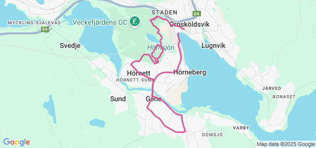 Örnsköldsvik. Förbi Gene, Hörnsjön och Varvsberget. Sedan downhill-led ned mot stan igen. Många höjdmeter under passet. Även asfaltsvägarna var kuperade. Sega och trötta ben från igår, vilket kändes mycket tydligt när det gick som mest uppför, såsom uppför Varvsberget. Efter dagens pass har jag sprungit på Mycklingsberget, Åsberget och Varvsberget i Örnsköldsvik. Jag har även sprungit i bergen kring Bergsjö. Jag får även ta och springa på Svedjeberget någon gång.