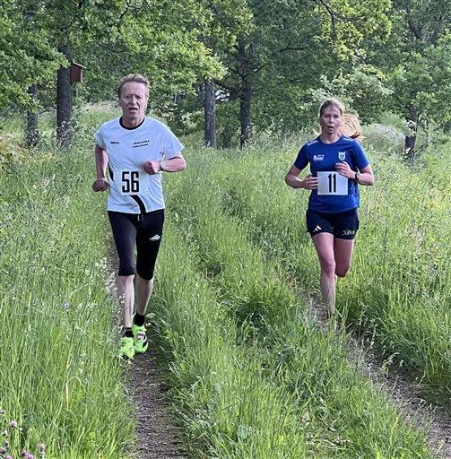Vid vändningen kommer vi ikapp en annan tjej samtidigt som hon som legat i min rygg går upp och drar. Men hon kroknar helt efter en knapp km och nu är det bara jag och en tjej kvar som försöker hålla upp farten. När det är 1km kvar är det lite publik som hejar på henne. "Jag dör" svarar hon. Och typ så kände jag också. Men vi strävar på båda två och håller farten.