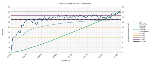 Jag är f.ö. positivt överraskad att jag kunde ligga så pass högt i puls under drygt en timme. I snitt 138 BPM, dvs. strax över A3- (135 BPM). Jag har nog vilodagen att tacka för det, samt supekompensation efter att ha motionerat varje dag veckan före det.