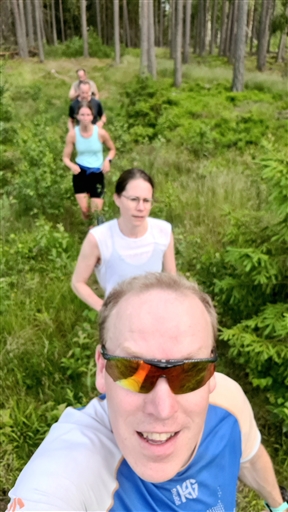 Svågrar och svägerskor sprang en skogsrundan på midsommardagen. Blev som vanligt lite upptrissad fart när Helena är med. Bra med högre tempo ibland.