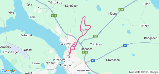 Sol, ca 15º. Mkt backar! 253 höjdmeter. Vattenpaus var 5 km. Ökat tempo kilometern före vattenpauser. Crosstrainer på Friskis 20 min före och stretch efter.
