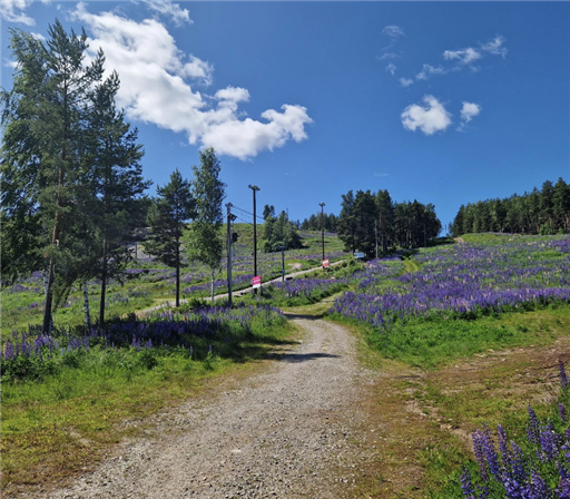 Först vandring uppför Källviksbacken och sedan bort mot Runnleden. Många lupiner i backen var det.