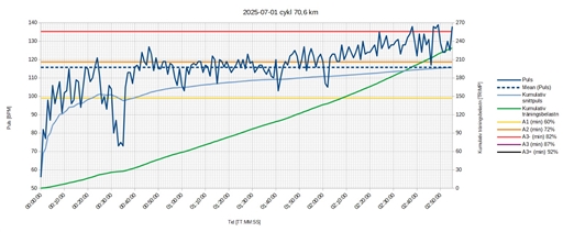 Jag hade med mig en halvliter vatten men använde inget under passet. Jag var dock rejält törstig efteråt och drog i mig allt vatten i ett svep då jag väl var hemma. Jag körde även utan extra energitillskott och det funkade förvånansvärt bra. Jag tror att min fettförbränningkapacitet har ökat rejält jämfört med förra sommaren.