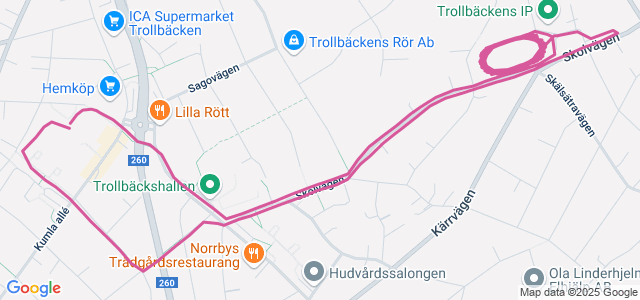 Till och från Trollbäckens ip plus ca 600 m på ip