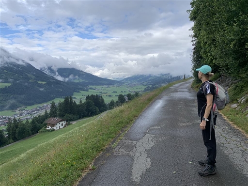 Det usla vädret blev inte alls så uselt, molnen låg iofs som små luddkuddar över dalen, men när vi klättrat upp till Filzenhof hade vi en rätt imponerande panoramavy över dalen. Nerför var en prövning för rygg och lårmuskler!