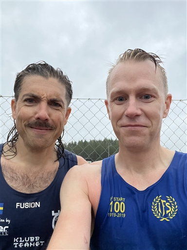 Jämnt lopp och en liten negativ split med 12". Bra känsla och nöjd med insatsen👌🏼Kallt och blött så vi tar en nedjogg tillsammans med Kim Oskarsson innan vi tar bilen till omklädningsrummet.