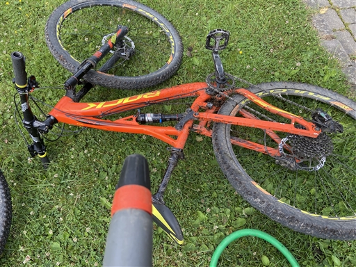 Skönt tur i skogen med dottern! Perfekt temperatur men blött o lerigt efter nattens regn tekniskt svårare vilket är roligare!! - första gången vi fick göra rent cyklarna på hela våren !