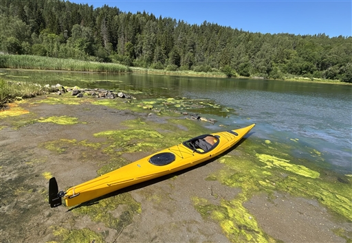 Endelig fått meg kajakk, så da ble det jomfrutur i Bundefjorden på vei hjem fra fabrikken. Noe ganske annet enn kano, dette, så brukte noe tid på å venne meg til å holde balansen og justere pedalene.