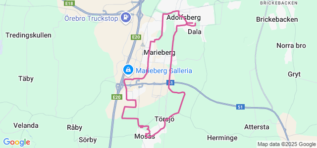 Adolfsberg - Lövsäter - Mosås - Marieberg Köpcentrum - Marieberg - Lindhult - Adolfsberg
