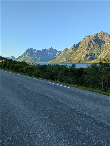 Det enda som fanns att springa på var europavägen och det var inte alltid helt behagligt. Försökte mig på någon liten stig, men den tog slut efter ett par hundra meter och så blev det E10 igen. Men fantastiska omgivningar att löpa i och vilket väder!