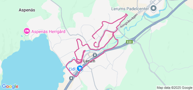Sammanlagt löptid 1h 4min - gångtid 11min.
