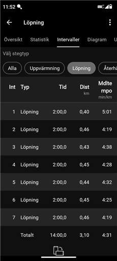 typ, distans, tid och snittfart. Stjärnmedlemmar kan kopiera samtliga fält och diagram.