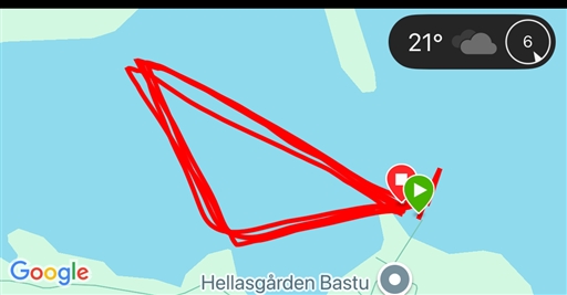 23 grader i vattnet. Vi körde en 400m loop med gemensam start varje varv. Gav upp efter 4 varv då axeln gjorde sig påmind.