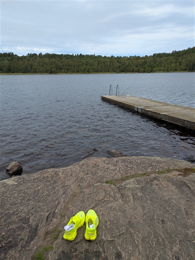 Av med översta lagret kläder för ett dopp från bortersta bryggan. Varmare i vattnet än i Billebjär! Så skönt. Så lugnt. Naturen här blir aldrig passe och för gammal. Den är evig.