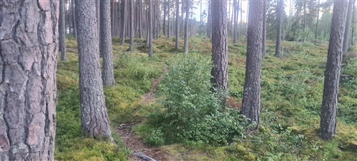Blandat på väg och i skog. På vissa ställen svårt att följa stigar pga högt gräs och vegetationen.
