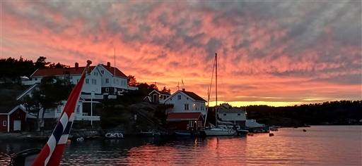 VSV - VNV. Varierande vindar, strålande sol. Ändrade mål från Risör till Lyngör pga så god vindriktning.