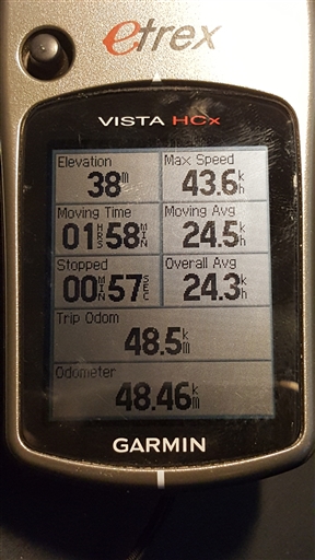 Den vanliga 2-timmarsrundan. Först till badet vid Vretbo, sen till badet på S. Björnön, slutligen hem igen. Jag tog det medvetet lite lugnare i dag, då jag planerar ett lite längre pass på söndagen. Kroppen kändes bra efter en vilodag på fredagen, men fortfarande skavsår i röven från sadeln. Behöver göra något åt problemet.