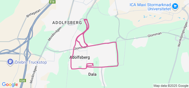 Hagalundsbacken - 4.07 - 4.12 - 4.11 - 4.17 - 4.13 - Tot 4,78 km med snitt 4.24 min/km