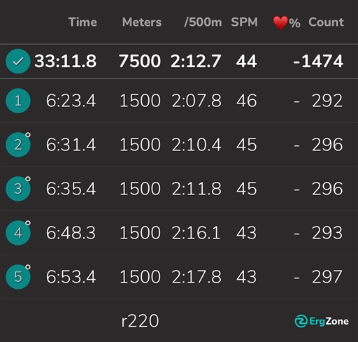 5x1500 m, 1 min vila mellan. Nedvarvning.