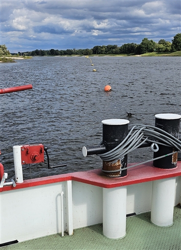 Intressant och omväxlande cykling. På vallen, bredvid vallen, byar, fält, 6 km tall och blandskog, asfalt, grus, plattor, sten, vajerpendelfärja (drivs enbart av Elbes strömmande vatten!), med och motvind, sol, moln och en regnskur som missade oss med en liten kvart.