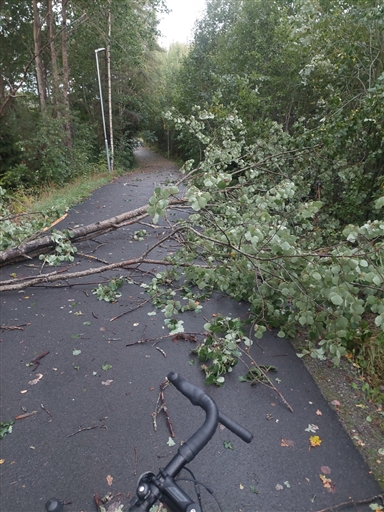 till jobbet, ett träd över vägen som vanligt efter stormen