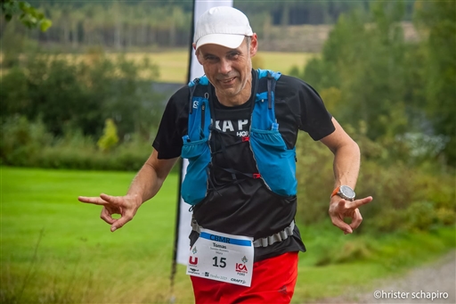 Sprang fyra varv på en 10.8 km bana. Placering 1