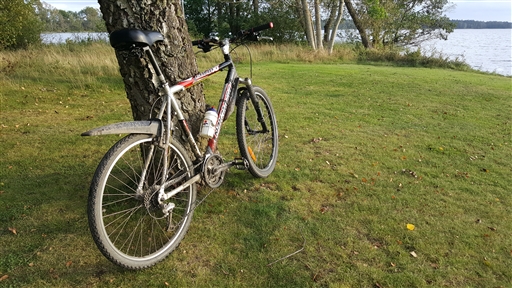 Planen var att cykla ca. 2,5h, först till badet på S. Björnön, därefter till Vretbobadet, sen tillbaka till badet på S. Björnön igen, sen hem. Pga. ett par haverier blev det en kortare tur. Dels gick vajern till bakväxeln av efter ca. 10 min cykling, sen gick kedjan av efter ca. 100 min cykling.