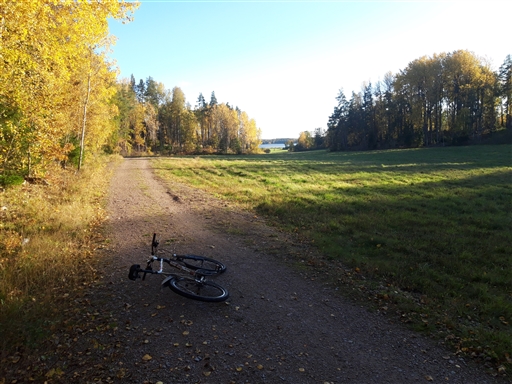 Jag cyklade samma vända som i fredags, dvs. först till badet vid Vretbo, därefter till badet på S. Björnön, sen vidare asfaltsvägen till Björnögården, där jag parkerade cykeln för ett löpppass, fortsatte sen hem, efter löpningen.