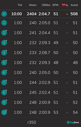 10x1 min, 1 min vila mellan. Med Julia.