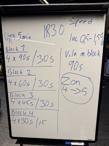 Kändes mycket bra idag trots ordentlig träningsvärk från måndagens tabata. Kroppen svarade mkt fint och upplägget med kortare och kortare intervaller tilltalade också. Kostade på mig 20 km/h sista 15 s för skoj skull.