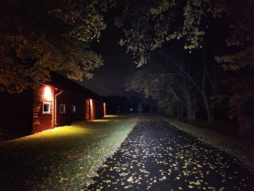 Ut I tidig morgon, 10 grader, blött o vindstilla. Genom byn o ner mot sjön. In I det totala mörkret, Silva gjorde sitt jobb bra! Ingen gryning över kohagarna, ljuset från ladan mötte mig när jag kommit ut på andra sidan. Grusvägen väldigt blöt o halkig på sina ställen. Mötte vanliga bilarna vink o blink. Såg korna innan Stora Elgboda. 🥰