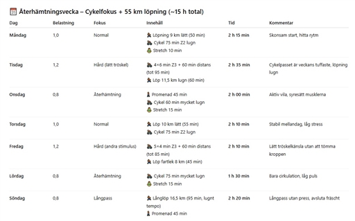 * Återhämtning fysiologiskt från maxveckan utan att tappa rytm.