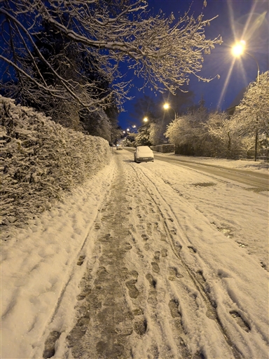 Promenad till gym, ganska fint men väldigt halt.