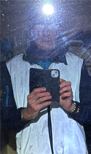 Fjunsnödis och -1° med pannlampa och reflexväst kl. 6.