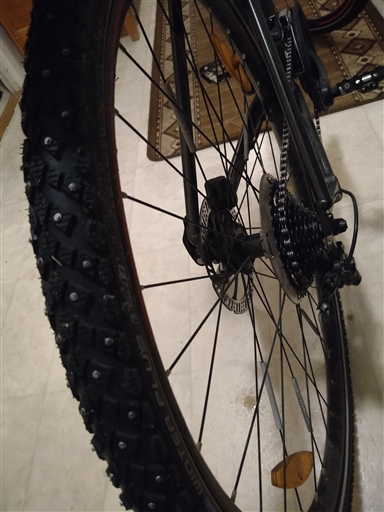 Nya vinterdäck på min hybrid cykel. 240 dubb på vardera fram och bakdäck.