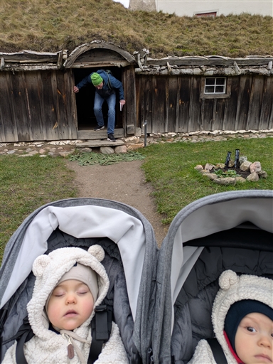 Till, på och hem från Kulturen. Med tvillingar i vagn och resten av familjen som sällskap.
